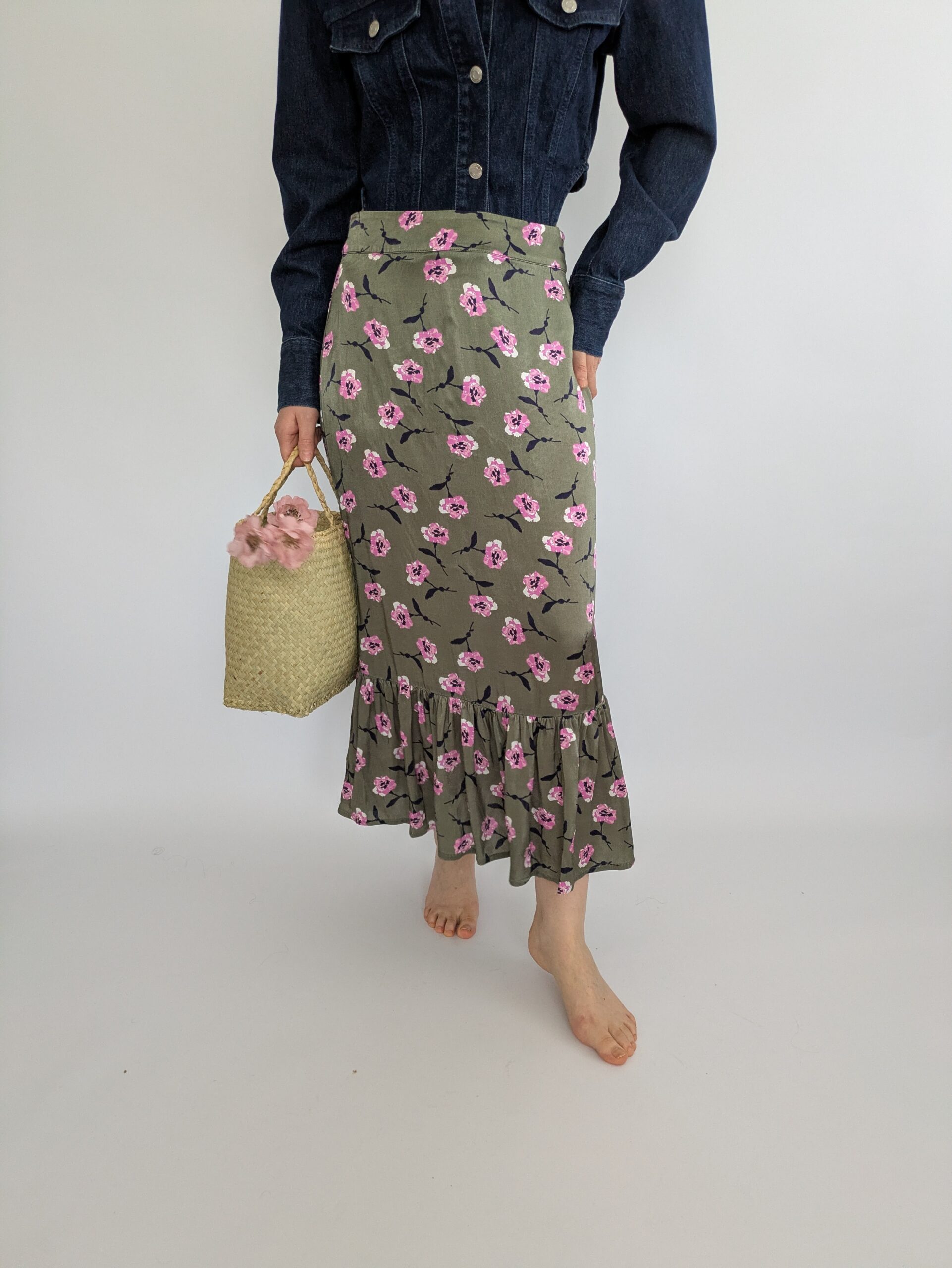 Ghost London Blumenrock khaki grün rosa Gr. S