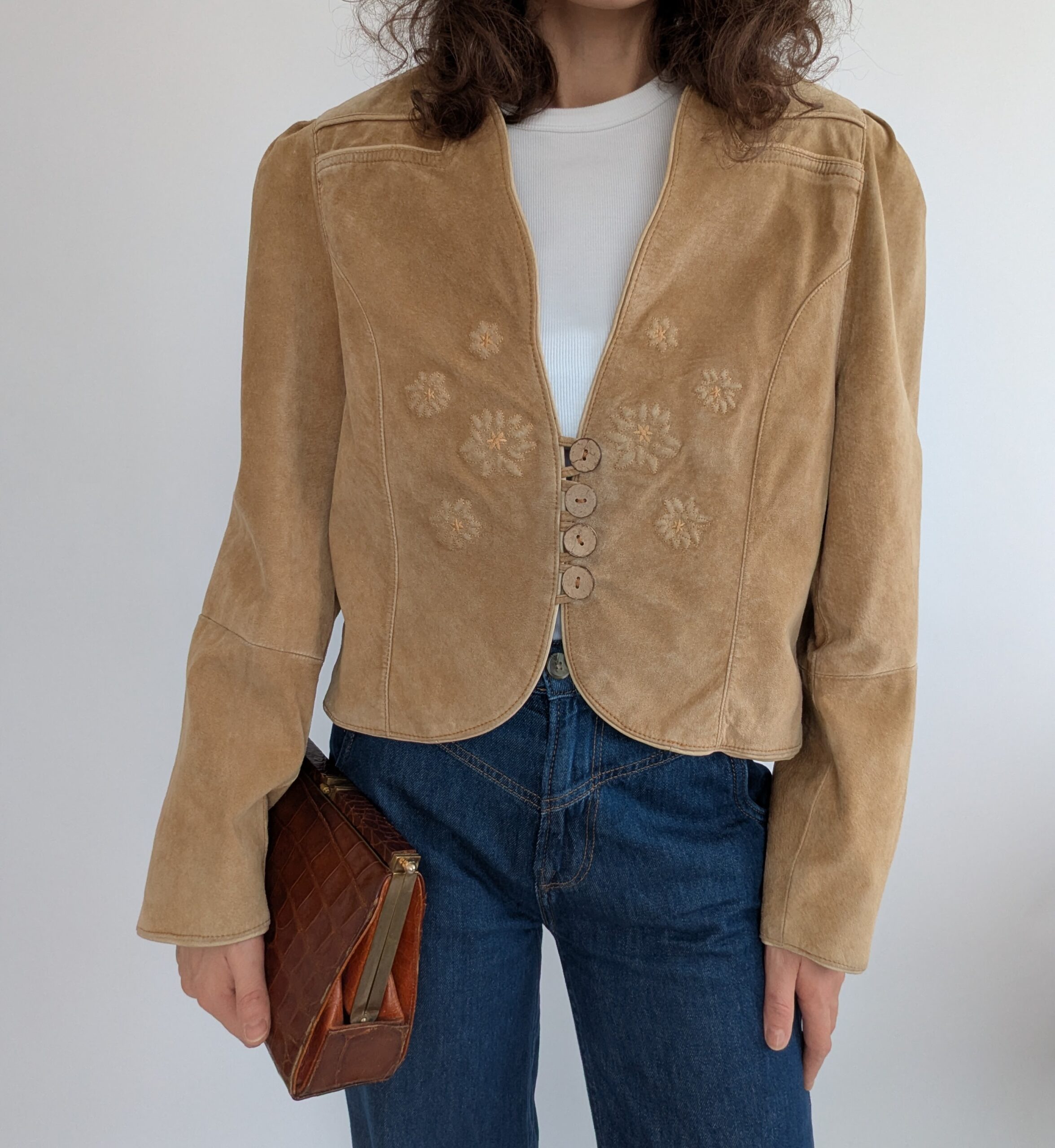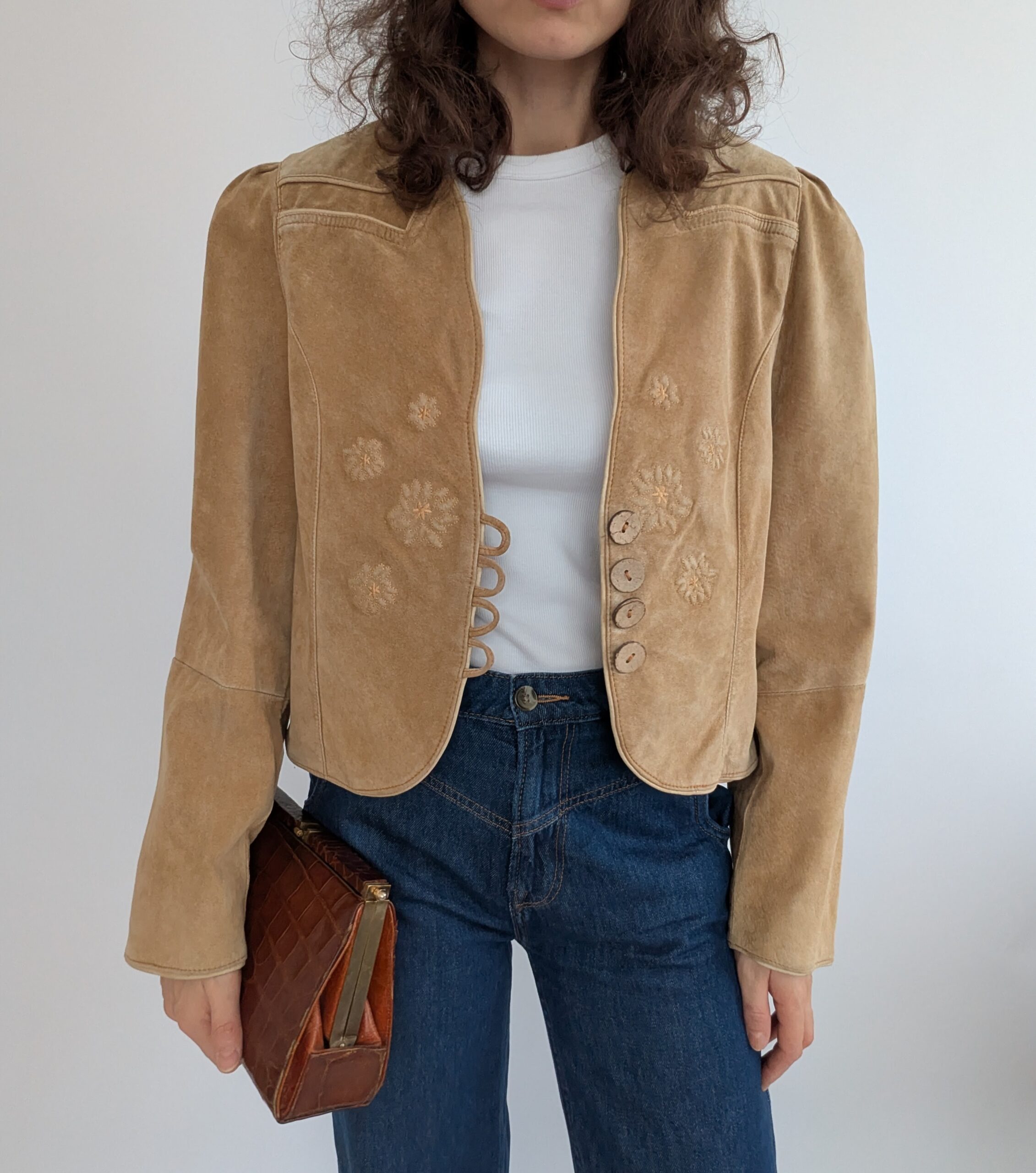 Lederjacke mit Stickerei Vintage Gr.40