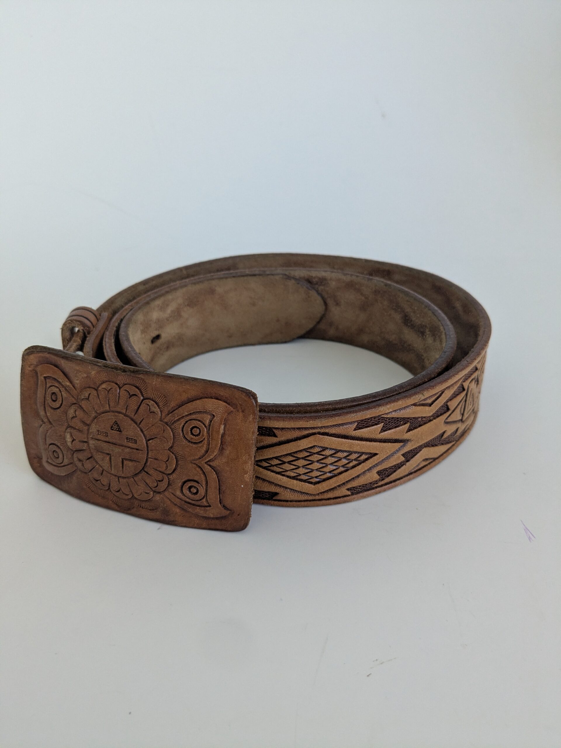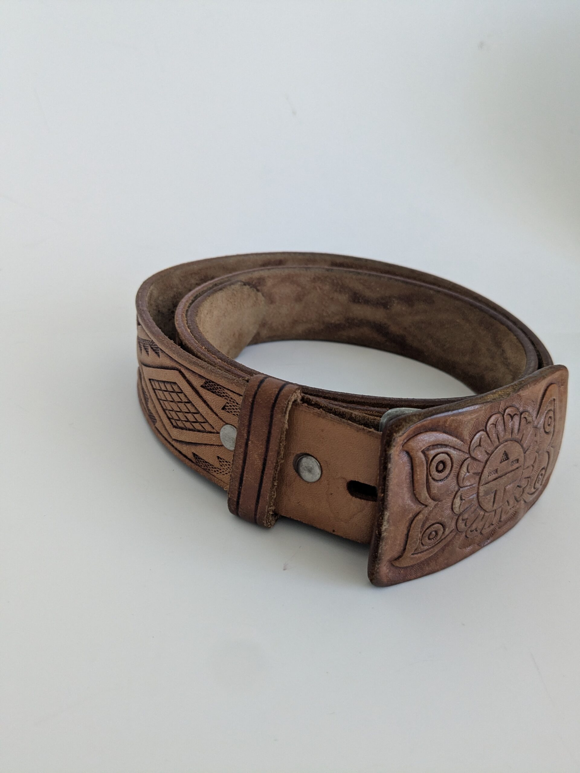 SELTENER VINTAGE LEDERGÜRTEL MIT AZTEKEN-ADLER-MODELL Gr.M